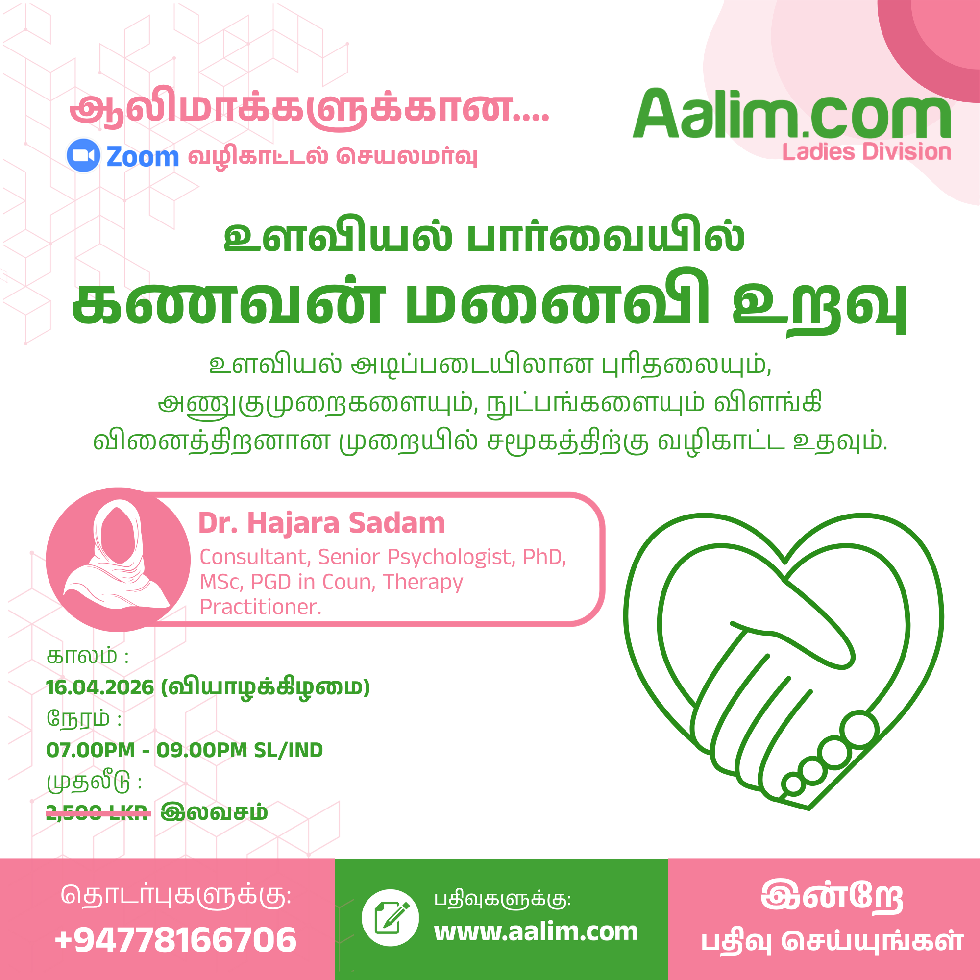 எங்கள் aalim.com App ஆனது பதிவுசெய்யப்பட்ட ஆலிம்களுக்கு மாத்திரம் பிரத்தியேகமாக கிடைக்கும். உங்கள் Android மொபைல் இல் பதிவுசெய்த மின்னஞ்சலைப் (E-Mail) பயன்படுத்தவும்.
